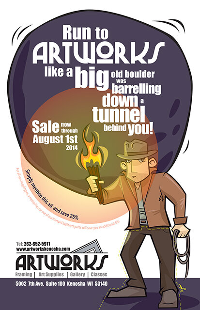 Kenosha is a wonderful little town with a bustling art community. Artworks has become a bit of a hang out for me. The owner Chet (an accomplished artist himself) runs his framing business from there and has framed all my artwork that requires it. And I, do his graphic design work.